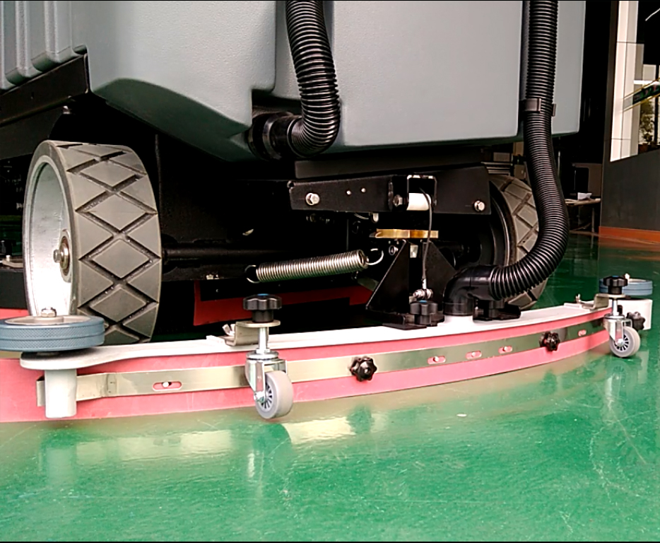 6、更換破損的洗地機(jī)刮條,調(diào)整洗地機(jī)吸水扒的角度,對(duì)于正確的使用,洗地機(jī)吸水扒應(yīng)根據(jù)洗地機(jī)刮條的磨損情況來(lái)調(diào)節(jié)其高度,在清洗的過(guò)程中,洗地機(jī)后刮條應(yīng)與地面呈現(xiàn)一定角度。